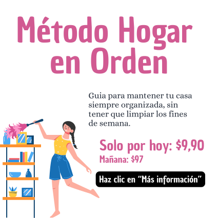 Descubre los 8 pasos simples para mantener tu casa limpia y organizada todos los días sin esfuerzo. ¡Llegó el momento de decir adiós a las limpiezas pesadas y aburridas de los sábados! Con el “Método Hogar en Orden” podrás tener un hogar siempre organizado, sin renunciar a tus fines de semana.